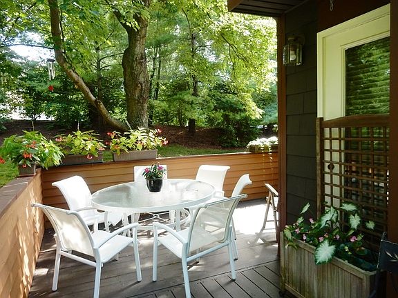 Location! Location! Location! Enjoy the luxury of townhome living with the feeling of a private single family home. This update 3 bdrm end unit boasts view of trees from every window. Enjoy the outdoors on your spacious wrap around deck. Updated kitchen with granite counter tops. stainless appliances, Jennaire stove, tile back splash,hardwood floors on first level, quality carpet on upper level, Inviting living room with fireplace, formal dining room can accommodate sitting for 12, master bath with spacious stall shower,durango limestone vanities, skylight, finished basement with family room, 3rd full bath, extraordinary storage. Impeccably maintained and upgraded home in sought after Madison Common. Pool tennis club house. Easy access to Midtown direct train.