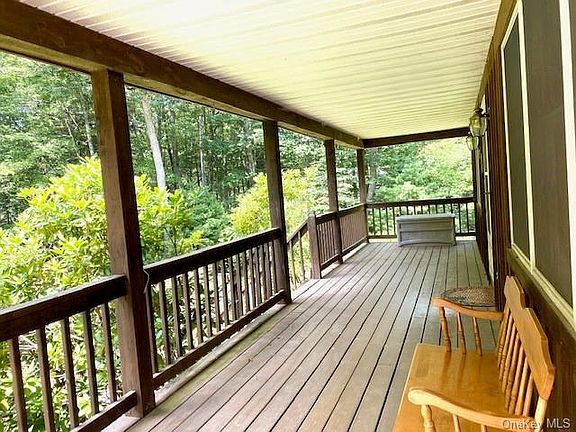 Lovingly cared for this beautiful home shows pride of ownership throughout! Nestled on 2 private acres with manicured lawn and mature landscaping this home can certainly be called your "Home Sweet Home". Walk up to your relaxing and spacious covered rocking chair porch and enter your beautiful living room, large and spacious kitchen with separate dining area with sliding doors to a beautiful rear deck to enjoy the outside. Complete the first level with a den/office or use this additional room as a 3rd bedroom/guest room and bath. Upstairs you'll find two huge bedrooms and bathroom. Great Rocking chair covered front porch, rear deck, whole house generator and quality construction throughout! Close to the Delaware River for recreation, Bethel Woods for music venues, Schools, Port Jervis commuter trains and buses and Eldred conveniences. You won't find a prettier property to make your own!