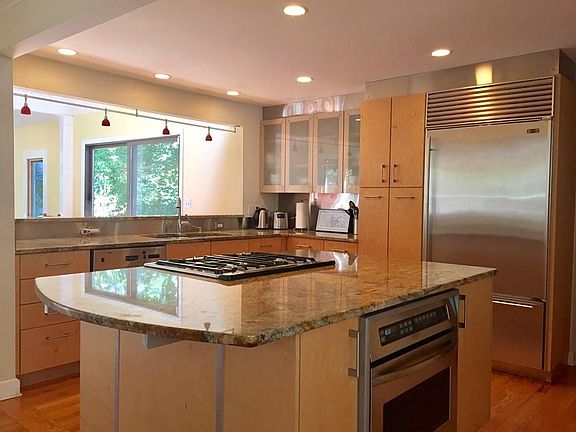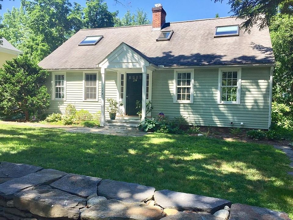 Located in the heart of downtown Amherst - a stroll away from local restaurants, Amherst Cinema,the library, area colleges and a great cup of coffee, is this stunning Cape style home. Offering an open, flowing floor plan, the dramatic vaulted ceilings, many sky lights and custom built-ins compliment the hardwood floors throughout. A large maple kitchen with granite counters is the hub of the home and offers stainless appliances including a sub zero. The dramatic sunken great room has windows on three sides and overlooks the redwood deck and private back yard. A spacious dining room is perfect for large groups, yet intimate enough for everyday. First floor master bedroom with dressing room and full bath a plus! Amenities include 2 fireplaces, N Gas heat with AC, carport, stone walls and walks. The basement has been semi finished and could be taken to the next level. An outstanding home in a priceless location. Meticulous! Matchless! Memorable!
