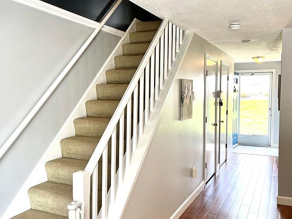 Lovely well maintained interior unit in the Quashnet Valley Condominium Association with freeform pool. 2 bedrooms, 1.5 baths, 2nd floor laundry, enclosed patio, and large primary bedroom with accent wall and walk-in closet. Many upgrades since 2018 including first floor laminate flooring, new vanity and mirror in the first-floor half bath, and mini split for heating and cooling in the living room and attic! Fresh paint and lovely accent walls throughout. Private patio oasis is enclosed with a garden gate and fencing. Lush landscaping surrounds all the buildings. Come, see, buy!!