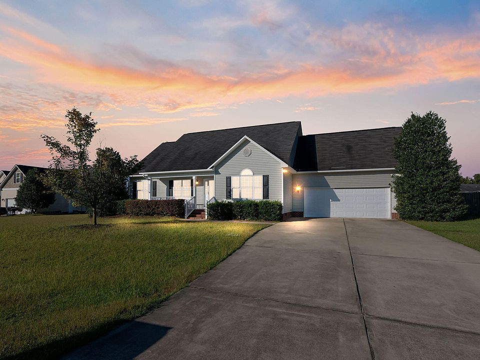 This beautiful 3 bedroom, 2 bathroom home sits on over half an acre lot in a cul-de-sac, with fence offering both privacy and room to roam. Inside, you'll find an open concept living area with a cozy fireplace freshly painted throughout, perfect for relaxing evenings. The kitchen boasts stunning quartz countertops, brand new stainless steel appliances, and ample storage. Primary bedroom offers a walk in closet, soaking tub, standing shower and double vanity with quartz countertops. All bedrooms are conveniently located on the main level, with the upstairs bonus room providing additional space for a home office, playroom, or entertainment area. The home also features a 2 car garage, walk in storage area, quaint front porch for rocking, and a back deck, ideal for outdoor gatherings and enjoying the serene surroundings.