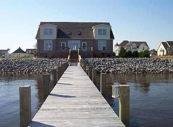 SOUNDFRONT EXECUTIVE HOME! Escape to this exquisite soundfront home in the upscale community of River's Edge. 3,287 sq ft with every bedroom having a spectacular view of the sound. Living & Kitchen & Dining enjoy the same views. Master bedroom w/large master bath & closet on main level, Two bedrooms upstairs are suites. Upscale Kitchen, w/stainless steel appliances, granite countertops, maple cabinets. 85' of Waterfront & 120' pier w/solar lighting.Landscaped Beautifully, even some Palm Trees & Decks. 2 car garage. LOCATION - Located 35 minutes to downtown Norfolk and 30 to the OBX. Community walking paths, tennis courts, multiple playgrounds, clubhouse & soundfront park. REDUCED FROM $799,000!