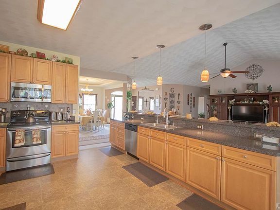 Minutes from the VA line! This is a must see immaculate home in a serene neighborhood! Beautifully landscaped with flowering mature plants, Large front porch, Open living room/kitchen/dining room, with counter/bar space galore, with stainless appliances,pantry and a popped out breakfast nook area, perfect for entertaining. Large master bedroom with tray ceiling, walk in closet and bath with walk in shower and deep soaking tub, formal living room/office with tray ceiling, large dining room and a laundry room with extra storage. Backyard patio, 2 car garage houses the water softener system