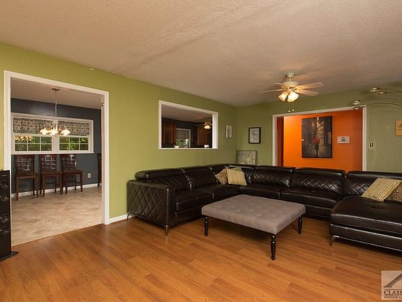 Wonderful ranch starter home opportunity in Camelot! Inside features an open floor plan between kitchen, dining, and living room with bright and cheery colors throughout. The spacious kitchen has dark stained cabinetry that pairs perfectly with the countertop, flooring, and white appliance set. The master is in the rear of the house with an ensuite bath and the hall guest bath has a kid-friendly sized vanity. Outside features a large deck and playscape backing up to the woods (half acre lot!) for peace and quiet. Low maintenance brick and vinyl siding, a 10 year young roof, and fresh paint inside and out on this well maintained home make it a great opportunity. Make it yours today!