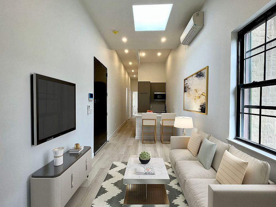 Welcome to your dream apartment in prime Williamsburg! This brand new, stunning 3 bedroom, 2 bathroom residence boasts condo-level finishes and is situated in a brand new building. With close proximity to the L, JM, and G subway lines, convenience and accessibility are at your doorstep. Step inside and be greeted by a spacious and inviting living space flooded with natural sunlight. The large living room provides ample space for entertaining guests or relaxing after a long day. High ceilings and recessed lighting throughout the apartment create an elegant and modern atmosphere. The apartment features a fully equipped kitchen with a convenient breakfast bar, perfect for enjoying your morning coffee or quick meals on the go. Complete with a dishwasher, microwave, and plenty of storage space, the kitchen is a chef's delight. Stay comfortable year-round with central AC & Heat, ensuring the perfect temperature in every season. This pet-friendly apartment welcomes your beloved pets to join you in your new home, because we know they're part of the family too. The three queen-sized bedrooms provide comfortable retreats for rest and relaxation. Each bedroom is complemented by a closet, ensuring ample storage space for your belongings. The two well-appointed bathrooms offer a stylish and functional design. Located in the vibrant neighborhood of Williamsburg, you'll have easy access to an array of trendy shops, restaurants, and nightlife options. Explore the lively streets and immerse yourself in the dynamic energy that defines this desirable area. Don't miss this opportunity to live in a brand new apartment with condo-level finishes in one of Brooklyn's most sought-after neighborhoods. Schedule a viewing today and make this stunning residence your new home!