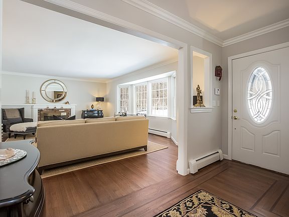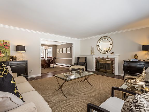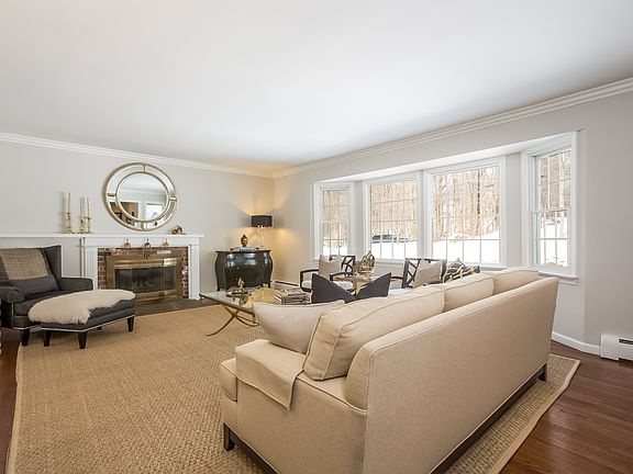 Expanded 5 bedroom, 3 bath Cape with over 3,500 square feet of finished space. A covered porch welcomes you to relax and enjoy. The interior's modern floor plan offers style, comfort and ease of entertaining. Kitchen with large island, Corian counters, spacious pantry has abundant cabinetry and counter space. Laundry room is conveniently located off the kitchen. Get cozy by the wood stove fireplace in the great room featuring cathedral ceilings, exposed beams and built-ins. Adjacent to the great room is an all season sunroom leading to an oversized deck that overlooks a wooded backyard with ample room to play. The main level also offers an open dining room, an elegant living room with fireplace, plus three bedrooms - one en suite suitable for a master. The upper level has 2 spacious bedrooms, one large enough as a second master bedroom option, plus a full bath with marble vanity. Lovely hardwood floors throughout. Three garage bays allow for all manner of life's toys. This exceptionally well maintained property has many updates incl: C/A, new oil tank, interior painting, renovated bathrooms & sunroom, refinished hardwood floors, new windows, recessed lighting, 2 ductless AC/heat pump units and new hot water tank. 1,500 square feet in the full bsmt is easily finished off. Located in SW Ridgefield for an ideal commute to NY/down county and just minutes to town. Superior improvements totaling over $150,000 make this a true gem at a smart price! Town water!