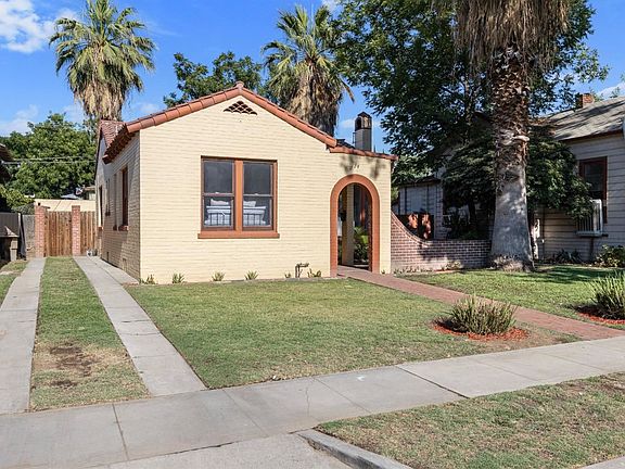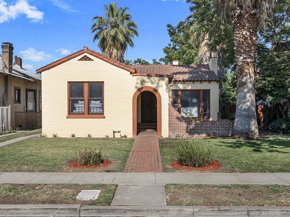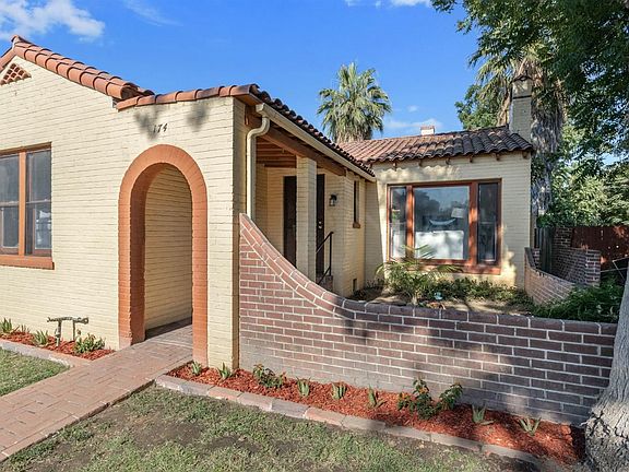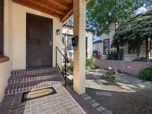 You will love the charm of this adorable Spanish modern bungalow. This home boasts some unique architectural features such as arched doorways and recessed nooks, and it has also been recently updated with new flooring and interior paint. Two large bedrooms and one bathroom with a tub/shower combo share one side of the home. There is a laundry area off the kitchen and a brick cellar below the home with built in shelving. In the backyard there is a detached garage that has been converted to a shop/ storage area. The large courtyard in the backyard is full of possibilities and includes a garden area.