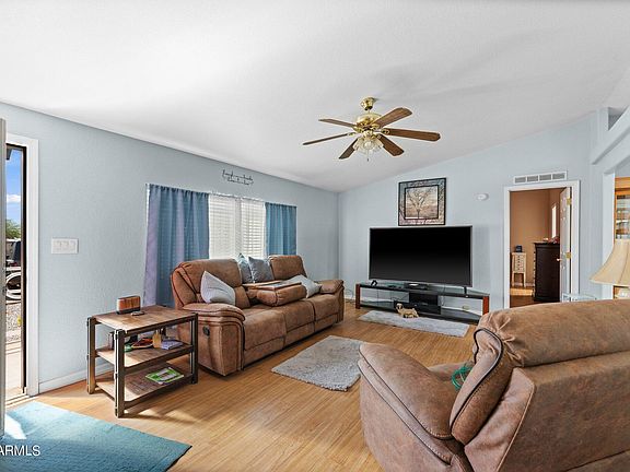 This delightful 3 bed/2 bath home sits on an oversized lot in the quaint Circle City neighborhood with no HOA. You will appreciate the open concept split floorplan. The spacious kitchen has plenty of cabinets, built in desk and display cabinet, The primary bedroom has a walk in closet and a bathroom with shower. Enjoy the outdoors on the covered patio overlooking the huge low maintenance backyard with storage shed and newly installed wrought iron fencing. Solar equipment allows for comfortable living with minimal electric bills The interior was recently painted and a new a/c installed in 2020 making this home move in ready just for you!