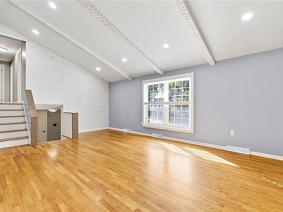 Beautiful home located in the heart of Moon Township. Great curb appeal. Covered front porch. Spacious living room w/vaulted ceiling and shiplap accents. Gorgeous kitchen w/granite countertops, tile back splash, stainless appliances and tiled floor. Primary suite w/hardwood floors and large closet. Stunning primary bath w/double sink vanity, tiled walk-in shower and travertine floors. Additional two bedrooms and updated full bath on upper level. Large family room, fourth bedroom (can be used as a home office) and half bath on entry level. Lovely 37x20 covered deck w/uncovered area. Large garage w/16x7 storage room. Fully fenced-in back yard/ Newer roof and AC. A great place to call home!