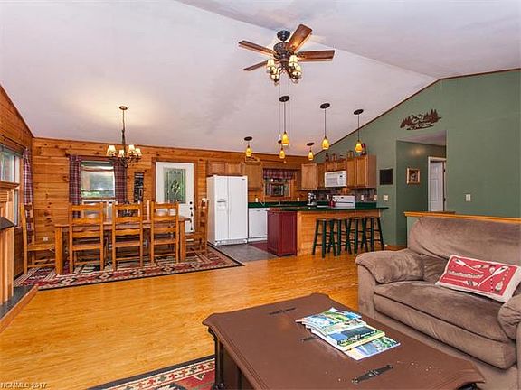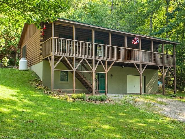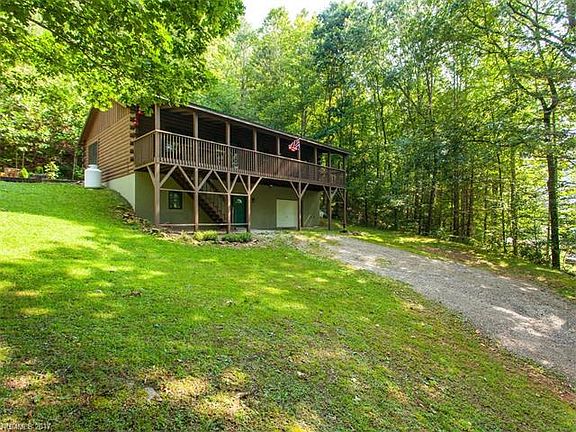 This cozy log cabin sits on a peaceful creek front property that adjoins the National Forest and just minutes to Lake Logan and the Blue Ridge Parkway. It offers a tremendous amount of nearby outdoor activities such as trout fishing, cycling and hiking. Home offers an open floor plan, screened in back porch, outdoor fire pit, hot tub and covered front porch. Currently set up with 3 bedrooms but is only on a 2 bedroom septic system. Majority of furnishings in home can convey. 35 minutes to AVL.