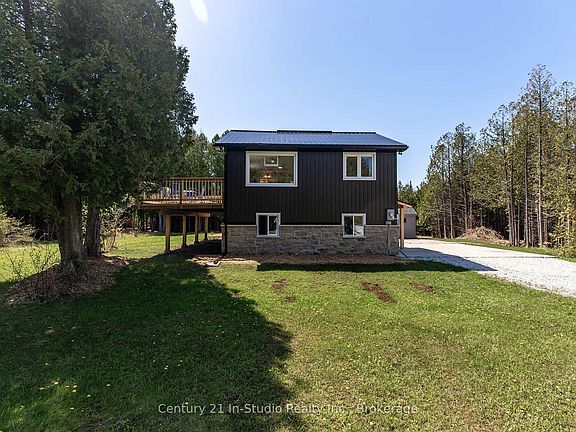 Charming, Updated, and Just Minutes to the Beach! Welcome to 174 Oliphant Way, where coastal vibes meet cottage core upgrades in the heart of sought-after Oliphant, just a short stroll to the beach! Set on a private, cedar tree-lined one-acre lot with a scenic wooded trail winding through the back, this property is perfect for first-time home buyers, single professionals, or cottage seekers looking to escape the hustle. Originally updated in 2019, this home got the full makeover featuring all-new electrical and plumbing, a finished walk in basement, new insulation and drywall, vinyl flooring, windows and doors, a cozy wood stove, and totally redone kitchen and bathroom. Fast-forward to 2024 with more fresh upgrades: Natural Ledgerock stone exterior, locally sourced and crafted, adds timeless curb appeal and local artisan charm. New vinyl siding, steel roof, and a re-built deck; both front and back entrances have covered roofs for year-round use. There is also a plumbed-in outdoor shower with the fixture ready to go, a handy storage shed, tons of parking, and the home is nicely set back from the road for added privacy. This turnkey property blends quality craftsmanship with peaceful surroundings, just grab your paddleboard and head to the lake!