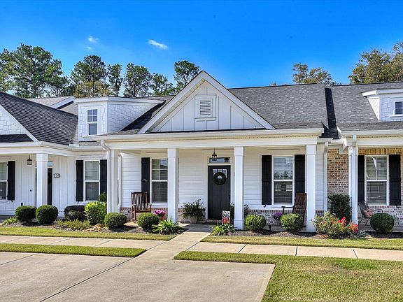 Custom built craftsman style townhome less than 3 years old. Charleston style front and crisp white hardy siding. Hardwood flooring throughout this open floor plan and upgraded tile flooring in both baths. Beautiful granite countertops in kitchen and baths; subway tile backsplash in kitchen with white shaker style cabinets. Large laundry room with cabinets and lots of floored attic space. The back covered patio surrounds a cute fenced in back yard with white vinyl fencing and a storage room. This home is well maintained and ready for its new owner. These townhomes are sought after and walking distance to grocery; restaurants; prompt care; ER; and shopping.