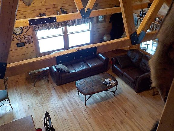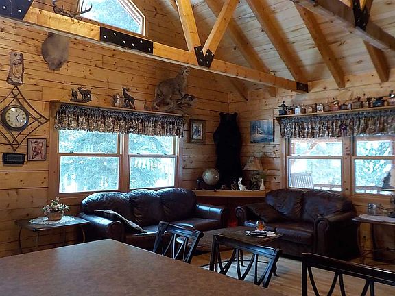 U.P. custom log retreat set on 11.5 private wooded acres yet just minutes from town. Add to this 2 log sided outbuildings: a 3-car detached garage and a 2-car heated insulated garage with workshop addition and nicely equipped guest apartment upstairs complete with wood burning fireplace. This cedar log home was constructed in 2001 and features a covered front and back deck for enjoying the quiet of the woods and all the wildlife that lives there. Inside you'll find an open Kitchen- Living -Dining room with hardwood floors and log beamed cathedral ceiling. The kitchen sports a large island breakfast bar and hickory plank cabinets. Main floor has 2 bedrooms a full bath plus a half bath with laundry. Third bedroom is in the open loft. Easy access to additional storage in the 4'8 poured concrete foundation. All appliances included in both home and guest apartment. Major furnishings are negotiable.