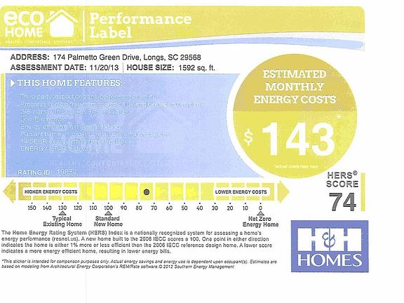 Madison floor plan. Eco friendly home with standard features such as 2x6 exterior walls, 15 SEER heat pump, granite countertops, tile baths, hardwood floors, stainless steel appliances, crown molding, insulated garage doors, security system, irrigation system, and to top it off 1 year free golf! Through the ecoSelect certification program, all H&H Homes are designed and built to be healthier, more comfortable, and more energy efficient than energy star! Come out and see the difference!