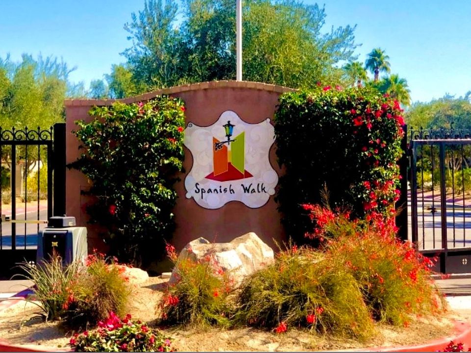 Highly sought-after Spanish Walk condo for rent. AVAILABLE 05/23/2022. Enjoy carefree living with resort-style surroundings. Beautiful 2 bedrooms/2 full baths, Unfurnished, long-term lease. Largest floor plan with 1602 sf. Lovely first-floor entry with lots of storage and a beautiful iron stairway leading upstairs to a spacious open living floor plan. Granite counters in the kitchen, high-end stainless steel appliances, and a kitchen window. laundry area with washer and dryer in unit. The Master bedroom has an oversized bathroom with Caesar stone counters and a separate walk-in shower and a sweet balcony. The second bedroom is large with a nook and Juliette balcony. and 2 car attached garage with direct access. Enjoy resort-style living behind this beautiful gated community. Spanish Walk has 3 pools and spas, a splash zone, community parks, dog run, fitness center, billiard room, BBQ area, and more. Close to 10 freeway and in IID utility district, for lower utility bills. Excellent community with high-end resort-style living. Renter responsible for utilities. No smoking allowed.