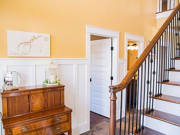 The ULTIMATE lake house...room for ALL....amazing views...over 500 ft of shoreline....easy walk to the lake....deep water...double slip boathouse...great internet!! House features two story rocked fireplace... soaring windows that showcase all that Hyco Lake beauty and views... 2 bedrooms (one is master) on the main level and 2 bathrooms. Den area, 2 bedrooms and 1 bath on the second level. Third level is ONE huge bonus room...would be a great bunk room or work out area/office/endless possibilities. Detached garage is 32 x28, with an unfinished room above it (used as workshop, but could be finished space). Point lot. 500 ft of Retaining wall!! Exterior has beautiful pavers and lighting to boathouse. Firepit. Paved concrete driveway. IT has it ALL! This house is just beckoning you to all the fun things to do at Hyco!