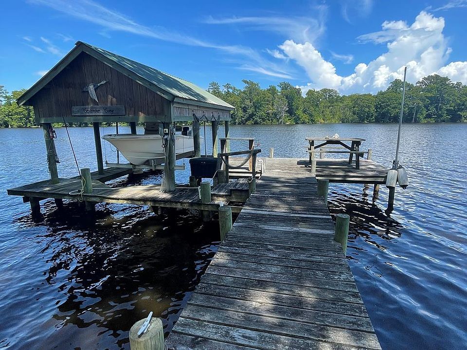 Waterfront privacy on Coastal NC's Yeopim Creek. Over an acre, this property has many unique features. Large open foyer to welcome guest, elevator, formal dining room with tray ceiling, gourmet kitchen with heated floor open flow for easy entertaining. Living area has fireplace and cathedral ceiling natural light! Media room. Large master suite with heated floor in bathroom. Two tankless water heaters and 3 bay garage. Outdoor living at its best from double porches, large patio, saltwater pool and grill station. Nature's walkway to pier, dock, boat lift and life along the Yeopim
