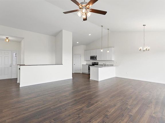 This McBride Homes Hickory ranch 3BR 2BA market home will be move in ready this spring. Located on cul-de-sac homesite! This open floor plan features wood laminate flooring and vaulted ceilings in the main living areas. Open kitchen with extended peninsula for breakfast bar open to dining area, level 4 painted white 42 inch tall kitchen cabinetry, stainless steel GE appliances, large single basin sink with pull out spray faucet, and corner walk-in pantry. Master suite features a large walk-in closet and a gorgeous master bath with adult height double sink vanity, large tub with window, walk-in shower, and linen closet. ¾ bath rough in at basement. Main floor laundry, upgraded lighting, and 6ft windows. Onsite amenities at Prairie Wind include a community playground, pavilion, and sports court. Enjoy peace of mind with McBride Homes' 10 year builders warranty and incredible customer service! Similar Photos Home Shown.
