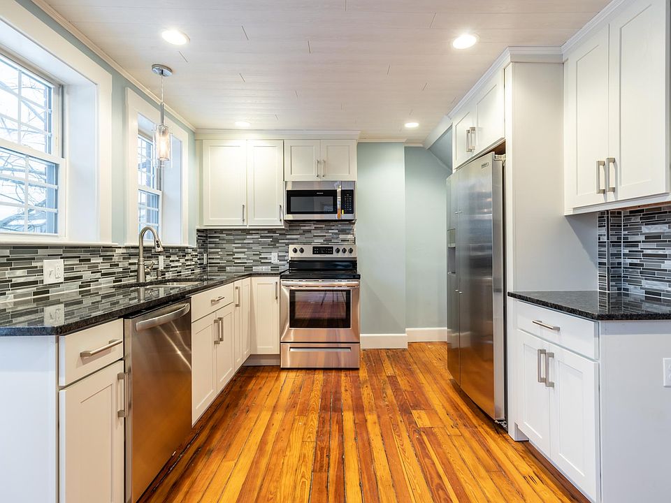 Welcome Home to the recently renovated townhome in the desirable neighborhood of Atlantic Heights! Be the second tenant in this townhouse-style duplex after an extensive renovation! Brand new kitchen with granite counters, SS appliances including a dishwasher, recessed dimmable LED lighting, shaker cabinets with quiet-close drawers/doors, and insulated ceiling for sound-dampening. Hardwood floors throughout all rooms, except bathroom which has beautiful hexagon ceramic tile. Bathroom is fully renovated w/ deep built-in shelving, tile floor, and 4 ft shower (no tub). All new plumbing and electrical panel, dry basement with new sump pump. Basement has new insulation to help keep heating costs down, a raised area for storage, washer and dryer, and bulkhead access to the backyard. Fully fenced backyard is semi-private, perfect for kids and pets. Atlantic Heights is a great community that is very kid/pet friendly. Off-street parking for 2 cars, with on-street parking on a first-come basis. Flower gardens in front and back yard - bring them back to life in the Spring, and be a stop on the Atlantic Heights Garden Tour! Landlord pays water/sewer; tenant pays all utilities (oil heat, electricity) and is responsible for snow removal and landscape maintenance (landlord provides tools for this). No smokers, please. While landlord is a lover of all dogs, the insurance co. determines dog breed restrictions, unfortunately - inquire for more specific info. Landlord pays water sewer, tenant pays heat (oil) and electricity. Tenant also responsible for snow removal/yard maintenance.