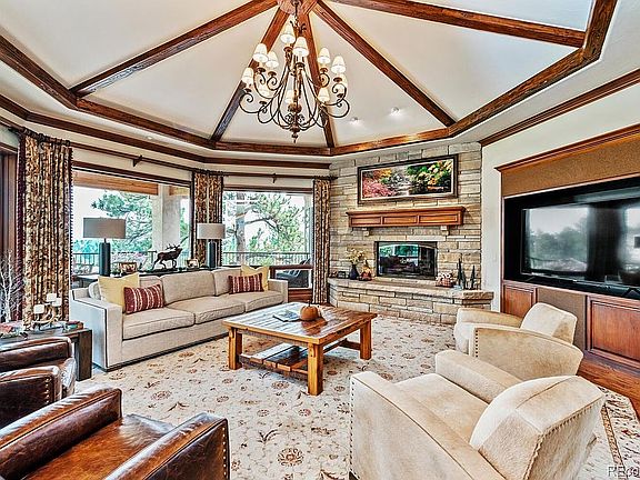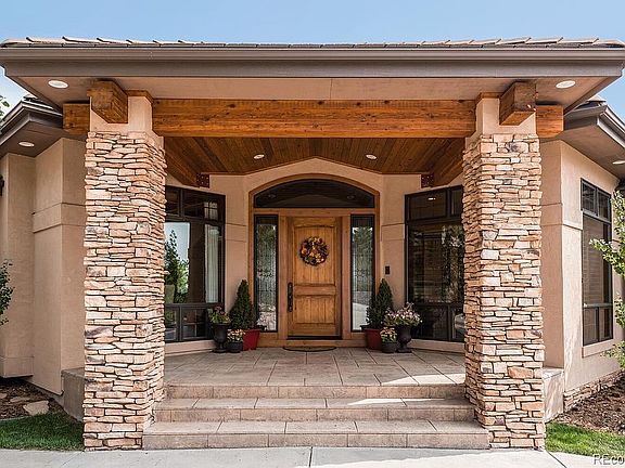 Elegant, Contemporary Mountain Home in Castle Pines Village! Your future home offers unobstructed panoramic views of Pikes Peak, Devils Head, & city lights of Castle Rock. Significant renovations were completed in 2009. Very private ranch-style home w/finished walkout basement, located on the 15th hole of Castle Pines CC (out of harms way). Spacious open floor plan is ideal for entertaining friends & family. Custom crown molding, alcove, coved, & coffered ceilings, exquisite finishes & built-ins throughout. Gourmet Kitchen has walk-in pantry & huge center island w/breakfast bar. Octagon-shaped Living Room w/fireplace & views. All bedrooms have private bathrooms & custom walk-in closets. A curved staircase leads to walkout basement w/2nd kitchen & wine cellar, great room, rec room, private Library/Study w/exercise room. Enjoy Sonos speakers wired throughout. Coveted southeastern facing covered back deck & patio is perfect for entertaining & enjoying sunrises and sunsets.