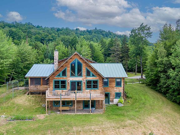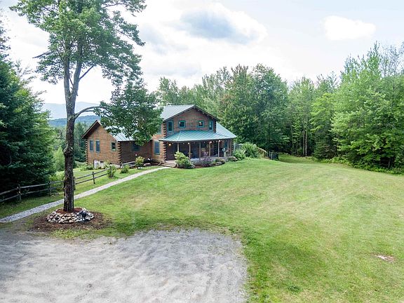 “What a view!” Is exactly what your friends will say when they come to visit you in this beautifully updated, 3-bedroom, 3 bath Katahdin Cedar Log Home. Sit on the back deck relaxing with a cocktail while enjoying views across Mt. Elmore and the Worcester range. In summer, ride out of your front door onto established biking/hiking trails that connect to Cady’s Falls, some of the area’s most sought after mountain bike trails. In the winter, you’re ideally situated between Stowe and Smuggler’s Notch Resorts, for all the winter recreational amenities you desire. The property boasts a new standing seam roof, recently renovated kitchen with an expansive island, first floor primary suite with ensuite bath, and a 50 X 60 steel, insulated outbuilding, currently used as an auto restoration garage, also suitable as a commercial space or home occupation. Lastly, bring your vision to the unfinished walkout basement for more recreational or family fun space. showings begin on 7/30/22