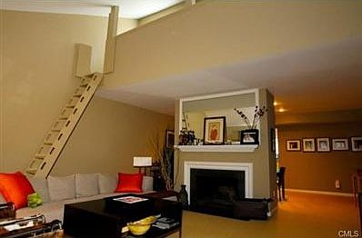 Sought after Rowayton Woods Condominium located in a residential area. Enjoy this stunning, sunny top level 2 Br 2 Bth renovated Condo. It's features include cathedral ceilings, walk up loft & bonus room [Off/Sit Rm] European style Eik w/ss appl, granite counters & Italian cabinets. Baths w/stone ceiling to floor. Extra large Deck. Separate entrance. New Hot Water Heater and 6 new skylights. Close to train and shopping. 1 Car Garage w/new door available separately. Commission payable if/when title passes.