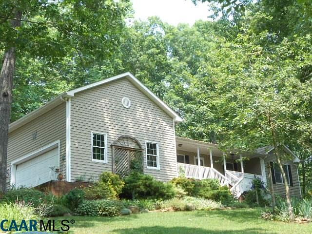 Perfect setting nestled amongst hardwoods in a quiet cove near Lovingston , this 1834 sq. ft., 2 Br., 2 1/2 Ba home on 3.57 ac. offers relaxing front porch to absorb serene mountain views. Hardwood floors flow through open floor plan with 12' vaulted ceiling in 17'x18.5' Great Room w/FP. Recent addition of adjacent 13'x21' Den w/screened porch is perfect for entertaining or for another bedroom. Fully equipped Kit. has abundant Oak cabinetry with Corian countertops & Dining Area. Both with great outdoor views of farmland & wildlife. 14.8'x 20.4' Master BR. has adjoining Master BA. & his/hers walk-in closets. 2-car attached garage w/workshop has a 4'x14.5' Storage closet. Landscaped with rock walls, perennials, seating & picnic areas.