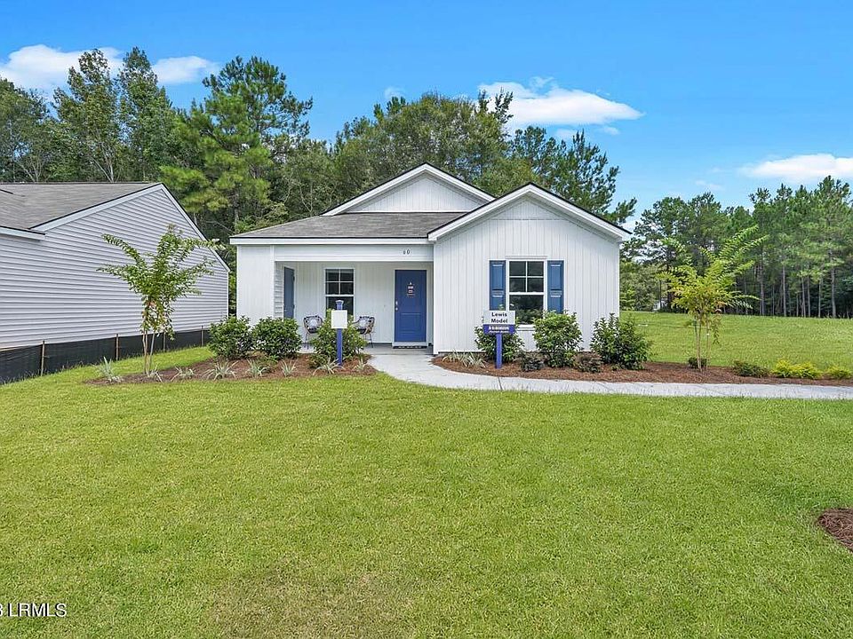 THE BEST VALUE & LOCATION IN THE LOWCOUNTRY! WELCOME TO JAMESTOWN ESTATES! Charming 3 Bedroom Cottage offers 0ne story living at a Price that Can't BE BEAT!!! Covered front porch, back patio and Spacious Wooded lot offers outdoor living at it's finest. Kitchen complete with stainless appliances and pantry is open to spacious living room. Primary bedroom includes LARGE walk-in closet, double vanity bath and walk in shower. Two privately located bedrooms are serviced by a full hall bath. Smart Home Technology & 2'' Faux Wood Blinds Included! Pictures, photographs, colors, features, and sizes are for illustration purposes only & will vary from the homes as built. Home is under construction.