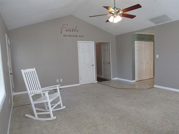 This delightful home could be your dream home! Super cute from top to bottom. It offers a spacious living room with vualted ceilings, eat-in kitchen with crown molding, island, built-in desk, walk-in pantry, laundry closet, and all appliances included. Three bedrooms all with walk-in closets, and the master has a private bath. The front porch is great for enjoying the beautiful weather. Also has a detached garage and nice storage shed.