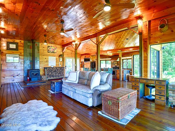 Nestled in the woods, this home is the perfect blend of rustic charm and modern convenience. Wake up to panoramic views, fish in your own stocked, spring-fed pond, and gather around a stone firepit with a removable pizza oven under starlit skies. This is more than a home; it's an invitation to embrace serenity and create lasting memories in a setting that feels truly magical. The home and grounds have been meticulously maintained, and the many upgrades made ensure modern comfort, while staying true to the natural beauty. With too many features to highlight, you'll have to experience it for yourself!