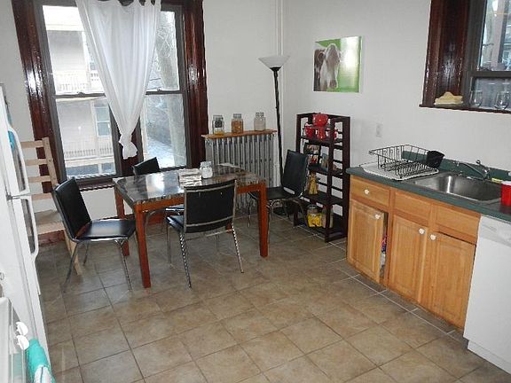 Updated 4 bedroom on the Hill across from Fitzgerald Park. Large bedrooms and 2 fully renovated, tiled bathrooms. Bay windows face St. Alphonsus Street. Beautifully renovated eat in kitchen with stainless appliances (including a gas stove and dishwasher), white cabinets and quartz counters. House has a large backyard. Laundry in the unit. Easy walk to campus, grocery store, MBTA and entertainment.