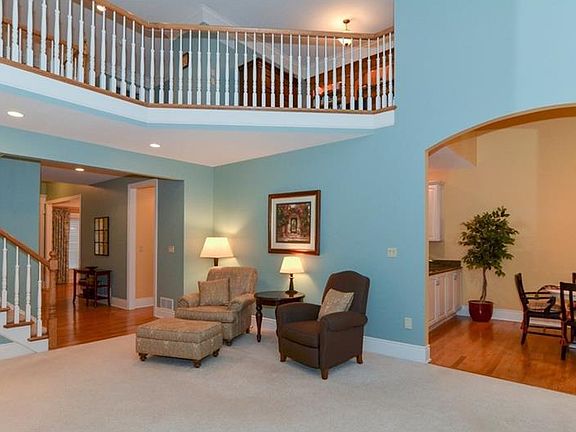 Location, Location! You will be enchanted the moment you enter the curved walkway that leads to the 8'entry door adorned w/Baldwin brass handset. Once inside,the inviting 2 story entry beckons you to explore all of the exquisite upgrades this spectacular custom home offers. You will be enamored w/the well-appointed eat-in-kitchen featuring 1"Ogee-edge expansive granite counters,top-of-the-line cathedral cabinets,gourmet stainless appliances,adjacent butler's pantry, &access to the main.free private deck w/sweeping views of the woods. A dramatic 2 story greatrm w/overlook features full masonry firepl.flanked by floor to ceiling windows.A main floor lush master suite,w/priv. entrance to deck,offers spa-like bath & huge walk-in.Too numerous to list all impeccable features;such as,cathedral floating tray ceilings, built-ins, & custom bar. For the busy lifestyle, the HOA maintains landscaping,lawn care, snow removal of walkway/driveway, roof & some exterior of the home.