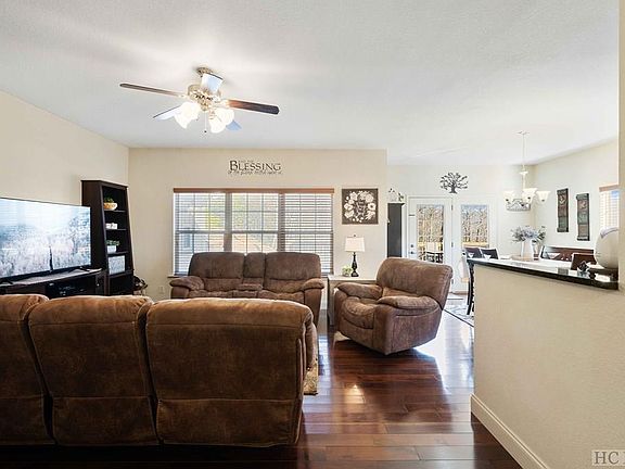 Loved and very well maintained single level 3/2 home is move-in ready! Located in a peaceful community and with great privacy on 3 acres. Quality throughout with beautiful Walnut hardwood flooring, carpet in the bedrooms and tile in the bathrooms. Modern kitchen (home built in 2008) with beautiful wood cabinets and Ubatuba granite countertops includes bar seating for 2. The Dining Room has space for a family sized table and with french doors exiting to the back deck, perfect for transporting food for outside dining. The Master Suite has a private bathroom and walk-in closet with built in organizer. Laundry Room is convenient to all bedrooms. Large private deck is big enough for large get-togethers and overlooks your spacious yard with trees and mountains as your backdrop. 2 storage buildings give you plenty of room for gardening tools or whatever you may need. Gravel road is well maintained by HOA. 15 minutes to town, 0 minutes to mountain living at it's finest!