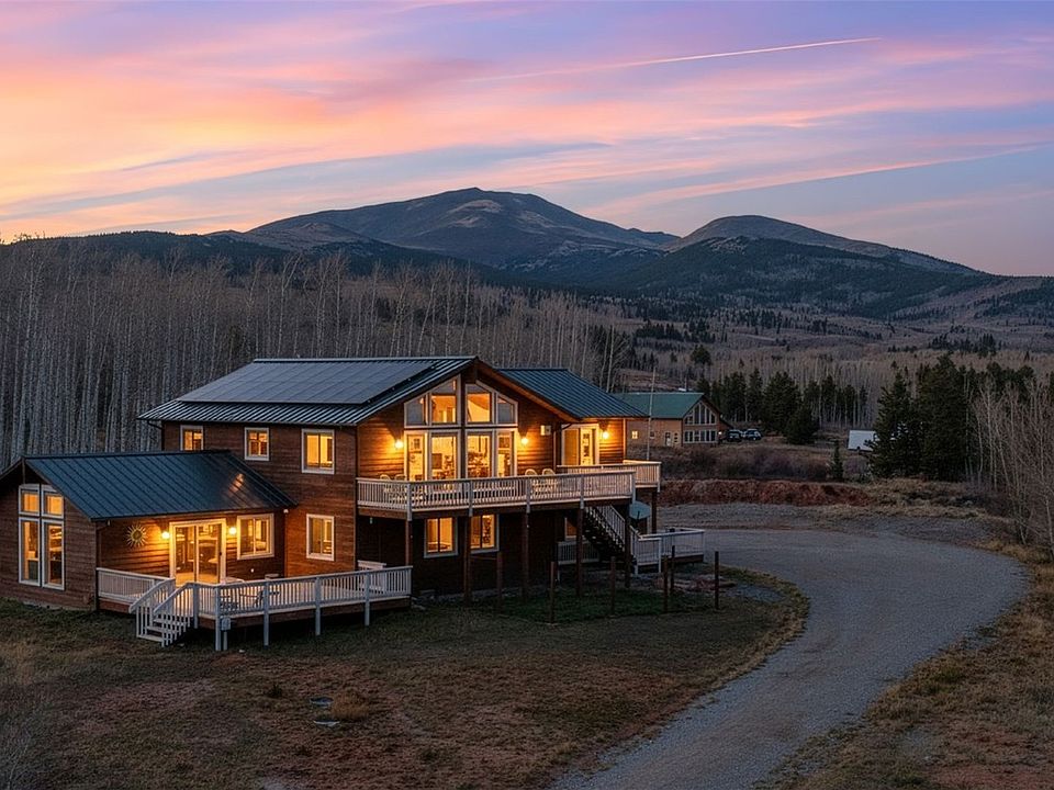 Experience complete privacy and serenity at this stunning mountain estate on eight wooded acres in the exclusive Silverheels Ranch subdivision. This home blends luxury and livability with an open-concept design centered around a gourmet kitchen featuring an induction range and vaulted ceilings that offer expansive views to the south. The large upper deck invites outdoor living—perfect for entertaining, wildlife viewing, or stargazing under Colorado skies. Enjoy the convenience of cable internet for remote work and a large garage ideal for vehicles and your mountain gear. Step outside to explore forested trails, cast a line in the nearby fishing pond, or ride horses straight from the neighborhood. Recent upgrades include a remodel with new kitchen, flooring, and paint, plus energy-efficiency enhancements, new roof and gutters, septic system, well pump, boiler, water heater, and solar / emergency generator. This home has had the full overhaul and is move in ready. With 4 bedrooms, 4 bathrooms (including steam shower), and a vaulted bonus room perfect for a family room, office, or game area, this property offers the ideal balance of mountain luxury, privacy, and practicality. Looking for more storage? There is ample scope to build a barn to compliment your mountain lifestyle.