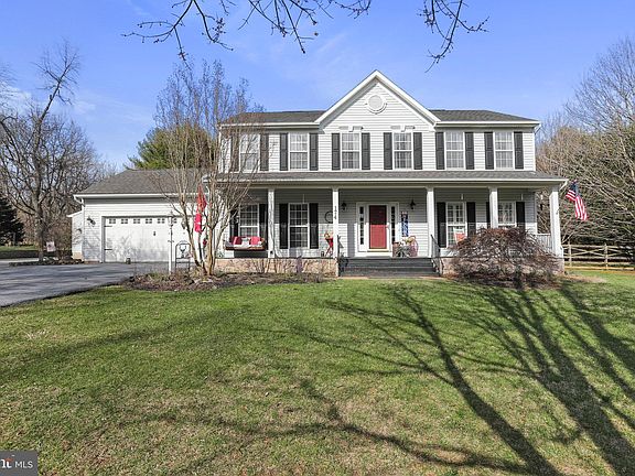 Multiple offers received. Highest and Best deadline set for 9 pm on Friday. The Sellers reserve the right to accept an offer before the deadline. Welcome to your dream home nestled in a serene, partly wooded lot offering privacy and tranquility. This stunning 4 bedroom, 3 1/2 bath house has over 3500 sq ft of living space, thoughtfully designed for comfort and style. The full front porch welcomes you inside this warm Colonial. As you step inside the foyer, your eyes will be drawn through the home to the stunning views of the rear yard. Once inside, you will find a generous sized kitchen featuring newer appliances, ample granite counter space, and a convenient breakfast bar. Prepare delicious meals while enjoying views of the lush backyard through the kitchen window or back slider. The family room and living room offer wonderful natural light and the warmth of a propane fire place for cold winter nights. The custom Crawford ceiling and wooden window blinds make this space feel unique and inviting. There is a good sized room at the front entry to use for a dining room, office space or even a kids play room. Step outside from the kitchen to the huge rear deck (16' x 28') which is less than 3 years old and offers a covered portion for hot summer days and wet weather. Relax and unwind out there, BBQ with friends, enjoy the fire pit or just take in the peaceful surroundings and wildlife. As you head upstairs you will find the large primary bedroom with a nice sized walk in closet and an ensuite that welcomes you with a stylish barn door. You'll have everything you need to unwind from the day with upgraded double sinks, a stall shower and a deep soaking jetted tub. Three additional carpeted bedrooms offer plenty of space for family or guests, each boasting its own ceiling fan and light combination. Entertain in style in the finished basement, equipped with a huge bar area including a Kegerator and beverage refrigerator. This bar area and rec room offer plenty of room for guests to gather, to play games or to enjoy movie nights. The lower level also has a full bathroom and a finished bonus room that you could use for crafts, an office, kids play room or even storage. Heading out back you will notice the approximate half acre fenced-in backyard that provides a safe and secure space for children and pets to play. Beyond the fence you will find the tranquility you didn't know you needed. As you walk through the mature pines, you will feel like you are in a magical forest from a Disney movie. This area is flat and private and perfect for horse owners. An added bonus are the two metal carports (15' x 35') that are large enough to house an RV and boat. The attached garage is a good size at 21' x 23' and is perfect for convenience and storage. For the car enthusiast or hobbyist, a separate 2 car detached garage (32' x 24') provides ample space for extra cars, lawn equipment or fun recreational vehicles. The detached garage has it's own 200 amp electric panel, window a/c units and an upper level for storage for all your needs. If you own an RV or have dreamed about owning one, there is an electric outlet on the left side of the detached garage for your convenience. This house truly has is all. It's located in a smaller community and offers the perfect blend of comfort, convenience, and privacy. Don't miss your chance to make this your forever home! Schedule your private showing today.