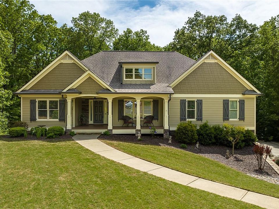 Stunning craftsman style ranch located in a culdesac on one of the biggest lots inside of the very desired neighborhood of Wild Timber. Built by one of the most respected builders in North GA, this home will not disappoint! Open floorplan with real hardwood floors throughout main living area complimented by lovely crown molding and plantation style window treatments throughout. Great dining room with beautiful chair rail molding. Open living room with beautiful stone fireplace as the center point! Off the living area be greeted by the largest kitchen in the neighborhood complete with custom cabinetry, granite countertops, stainless steel appliances, oven/microwave combo, large island, gas cooktop, and eat-in breakfast area! Split bedroom plan with large secondary bedrooms that boast vaulted ceilings and plush carpet with full bathroom in the middle. Walk past the large dining room and down the hall past your laundry room and find the oversized master retreat with a vaulted trey ceiling! In the ensuite master bathroom you will find a lovely tiled floor with double vanities, large soaker tub, oversized tiled shower, and his/her closets. Down the stairs to the walkout basement be pleasantly surprised by the large secondary family room that would be perfect for family get togethers, Saturday football games, pool table, home theatre or any other fun activities your family enjoys! A brand new mini-split unit was just installed for this room on 5/4 and new flooring and trim are coming soon! 4th bedroom and another full bath off the downstairs living area! Two large unfinished storage areas in basement. Large 3 car garage with 2 of the bays being over 22 feet deep for your larger or recreational vehicles! Outside, see the care taken with the well-manicured lawn complete with lovely accent bushes, flowers, and crape myrtles and fenced in backyard!