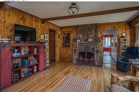 The Estes Park cabin you've been waiting for! An interior as quaint as the exterior, and all very well cared for. This 1,994sf 3BR/2.5BA home offers wood floors throughout; native rock, gas fireplace in living room, stone gas fireplace in spacious family room; knotty pine living & master bedroom; updated kitchen with granite countertop; separate dining area. Set on an in-town limit, but out of town feel, .63 acre lot of pines and rock outcroppings. A 2-car detached garage & fenced area for your pets. A perfect full-time residence or vacation home.