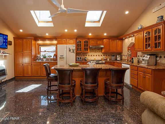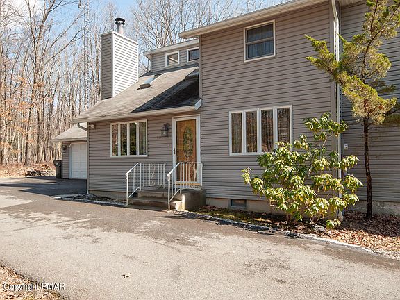 This lovely home is set in the Poconos! This is one spacious house loaded with character and charm. This house has offers granite countertops and floors, cathedral ceilings with a stellar loft with wood beams. It is nestled in a beautiful community equipped with amenities some such as a pool, tennis courts and clubhouse. Property has the best of both worlds, has privacy as well as an open fenced in yard. House comes with a spacious wood and trex deck for outdoor enjoyment, as well as a wood burning fireplace for cozy snow days!
