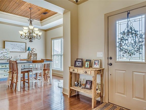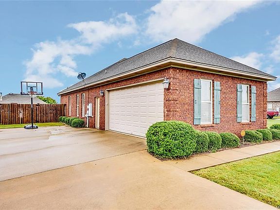 Remarkable 4 bedroom, 2 bath home in the beautiful community of Stonegate, Wetumpka. Foyer entry with beautiful hardwood flooring extending through the formal dining room which boasts attractive columns and wood planked ceiling. The great room boasts a corner set ventless electric fireplace and surround sound. The kitchen offers stainless appliances, a pantry, custom cabinetry and adjoins a spacious breakfast nook overlooking the covered back patio. On the left side of the home is a the laundry room complete with built in cabinets and one of the four bedrooms. The master suite features a large bedroom with double trey ceiling and a bath with a granite topped double sink vanity, garden tub, separate double shower and large walk in closet. On the other side of the home are the second and third bedrooms separated by the hall bath with tub/shower combo and granite topped vanity. Also featured are the covered patio and large privacy fenced yard with concrete pad for a future storage building.