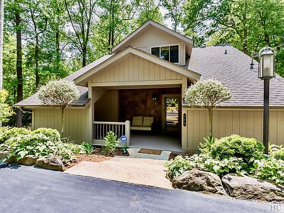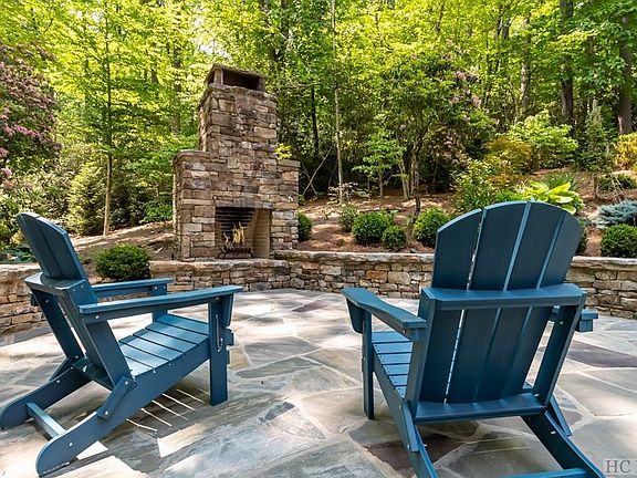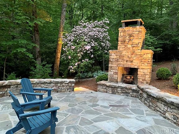 Enchanting contemporary cottage overlooking a fabulous stone patio, with a freestanding fireplace. Feels like a private sanctuary. 3 BR, 2 1/2 bath, just outside town limits, but close enough to enjoy the beautiful town of Highlands with all of its shopping, restaurants and the Arts. The landscaping is amazing! Outside is a built-in grill, pizza oven and hot tub with fire pit, overlooking a quiet stream and lush landscape. Wrap around screen deck for living and dining plus the gracious front porch are an added bonus. The kitchen is well appointed and overlooks the beautiful stone patio with fireplace. The night landscape lights create a visual wonderland. Wonderfully maintained, the perfect vacation or full time home. Encapsulated crawl space! Living the dream outside in the cool mountain air.