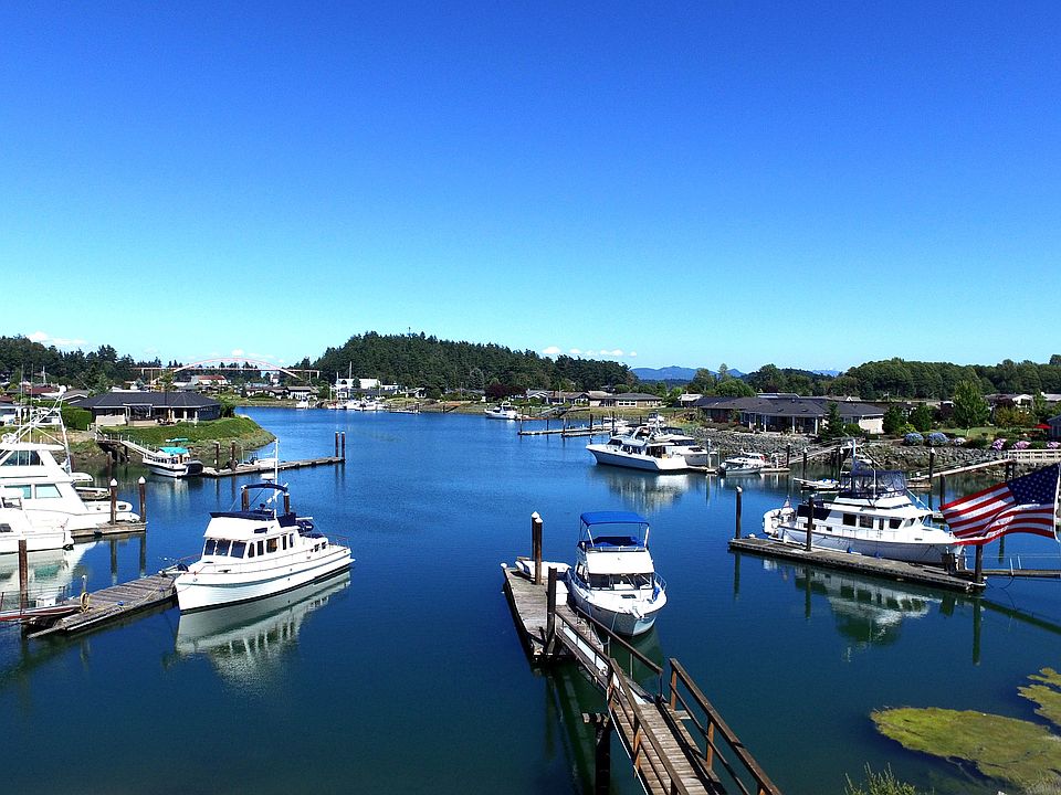 Waterfront home with dock that allows up yo 50' (LOA)! This cottage on the bay has a Very good view of water, mountains, and Rainbow Bridge. Single level home with high vaulted ceiling and expansive use of windows to enjoy light and view. 2 bedrooms, 1 3/4 baths and two car garage. Shelter Bay Community amenities include: golf, tennis, swimming, beach, marina and yacht club. Just over the bridge to the charming waterfront town of La Conner.