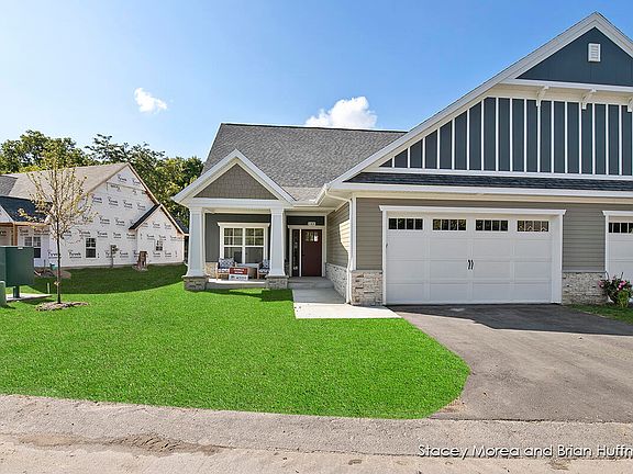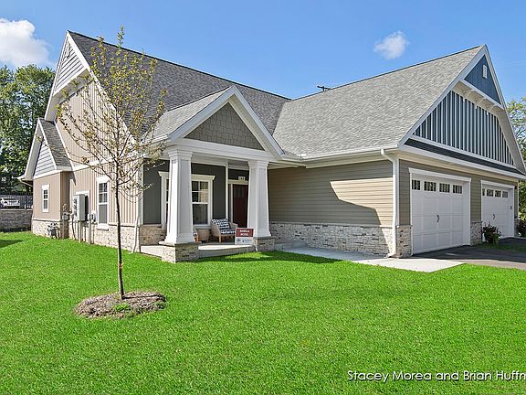 Take advantage of this great opportunity to own a NEW condo in downtown Rockford. One block from all the shops, restaurants & trails that Rockford has to offer. Featuring maintenance free living with luxury finishes throughout. All surrounded by Rum Creek, wetlands, open space and a boardwalk. This home features a main floor primary with open floor plan, kitchen with island and breakfast bar, dining area, door to outdoor patio, spacious living room, main floor laundry PLUS second primary or flex space upstairs and storage. 3 bedrooms, 3 full baths and just under 2000 sq. ft plus two car garage. Photos are of previous completed models and washer and dryer not included. Call today for more information!