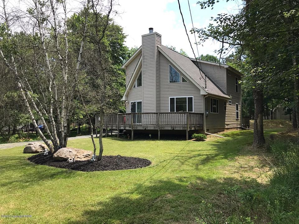 TOWAMENSING TRAILS CHALET. Move-in condition home. 3 bedroom 2 full baths, stone faced fireplace and large loft area for additional living space. All appliances stay including refrigerator, range, microwave, washer and dryer. Rear deck with hot tub also included. Great location, private yet convenient to beach and lake recreation areas. Don't miss out! Call to see this beautiful getaway home in the Pocono Mountains today!