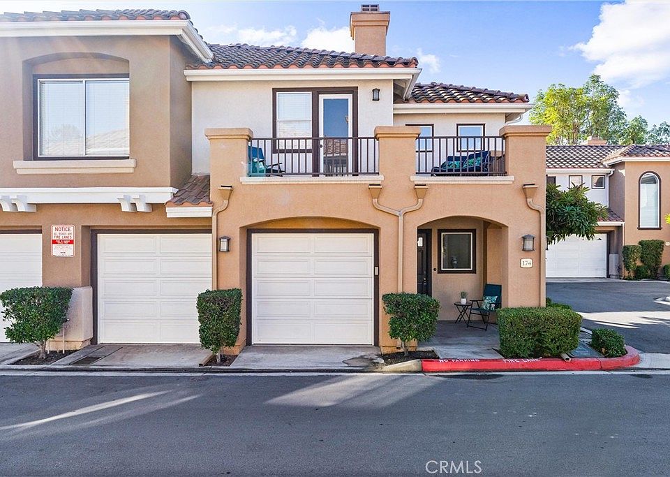 The primary bedroom is a serene retreat with its own ceiling fan, a generous walk-in closet, and direct access to one of the two full bathrooms. Both bathrooms have been impeccably maintained, complementing the home’s ready-to-move-in condition. Additional highlights include an attached two-car garage with direct access, where the washer and dryer are conveniently located. A spacious balcony off of living room is perfect for outdoor entertainment. Freshly painted interiors give the home a crisp and inviting look. This home is Located in a well-maintained community of California Terrace offering amenities such as a pool and spa, this home is surrounded by award-winning schools, close to toll roads, and features plenty of guest parking. This gem is move-in ready and waiting to welcome you home!