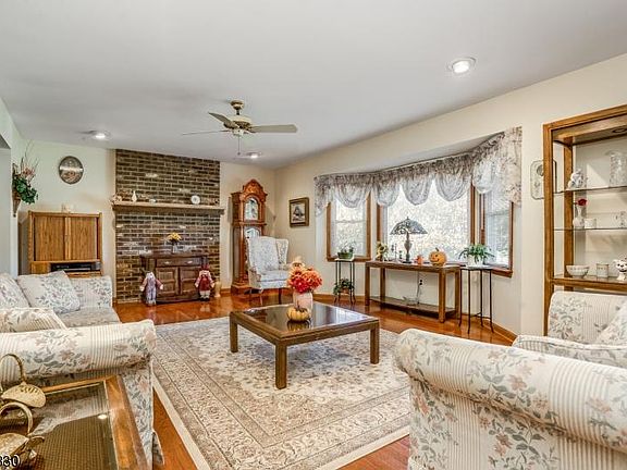 Covered front porch leads to foyer entry of this 4 bedroom home situated on an almost 2 acre lot. Living room has a bay window, brick wall with mantle and opens to a formal dining room with French door that leads to the family room. Family room with vaulted ceiling features a free-standing wood-burning stove, spiral stairs to the ground floor and access to large rear deck with spiral staircase that overlooks a private fenced yard. Features recessed lighting, ceiling fans throughout, hardwood floors, carpeting in the rec room, family room and bedrooms, tiled kitchen and updated baths. Eat-in kitchen with granite counters, tiled backsplash and stainless steel appliances. Master suite features a walk-in closet and updated bath with granite vanity & frameless shower. Two additional bedrooms and updated main bath with tub/shower complete the first level. The ground level has a rec room with slider to rear patio, laundry room, storage room, utility room, 4th bedroom (3 bedroom septic town-verified) and full bath that features granite vanity and frameless shower. Direct entry to 2-car built-in garage. Private, fenced-in level yard with wooded backdrop. Great home that is move in ready and situated in a convenient location.