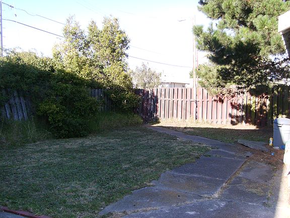 2 bedroom 1 bath 2 story condominium approx 764 square feet with huge backyard. Quiet end unit with no rear neighbors. Very big storage shed, 2 assigned parking spaces in parking lot, new kitchen floor and paint. New double pane windows. One common wall considerate and quiet neighbor. Short commute to SF. Condo fees approximately $283/month include water, garbage, repairs and maintenance.