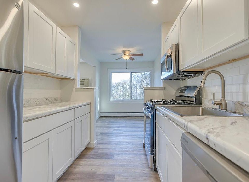 -Historic Peaceful Complex walking Distance to the Kingston Rondout Waterfront Shops, Restaurants and Boating Docks -Spacious 950 SF Newly Renovated Two Bedroom Ground Floor Apt with Sprawling Open Floor Plan -Brand New Stainless Steel Appliances include Dishwasher, Gas Stove and Microwave in Kitchen with Separate Dining Room Area -Sliding Glass Door leads to Patio along with newly Replaced Windows for Bright Natural Sunlight Throughout -Lots of Extra Storage and Closet Space in Each Room -MCM Style Bathroom with Shower/Tub and Built in Laundry Hamper -Wall Mounted Air Conditioning Unit Provided -Assigned Parking Space with One Year Lease -Brand New Cash Card Operated Laundry Room on Property -Community Courtyard with Picnic Tables facing Picturesque Hudson River Catskills Mountain Views Please contact with Questions or to Schedule a Showing ! **2nd Floor Corner Unit with View of Hudson River from Balcony also Available for 12/13/19 for $1700 One Year Lease Landlord Pays: Heat, Hot Water, Cooking Gas, Trash, Lawn & Snow Tenant Pays: Electric