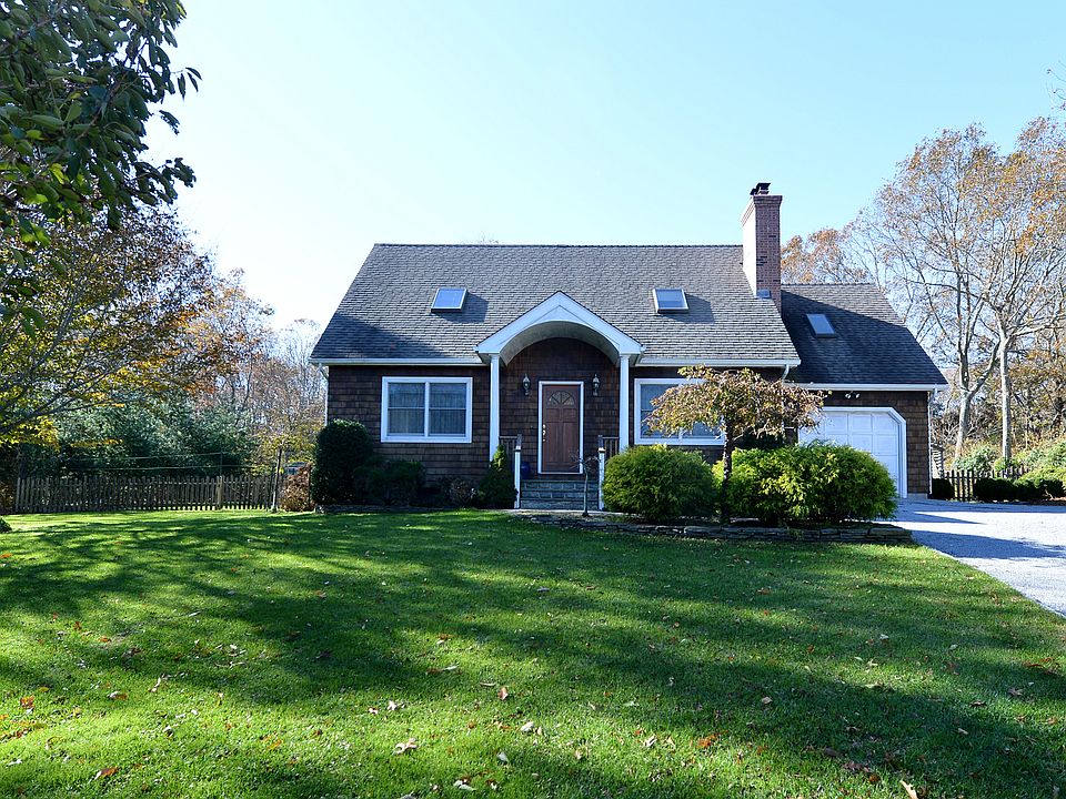 Move-In condition. Post Modern offering four bedrooms, two full baths, two half baths,kitchen, dining room, living room with wood burning fireplace and double height ceiling. A bonus feature on the second floor is a well lit studio, that is perfect for an artist, a home office or playroom. Other features include, central vac, central air, skylights, an outdoor shower,irrigation system and an attached one car garage. The park like property is truly magnificent. It hosts specimen trees, manicured lawns and is ultra private.