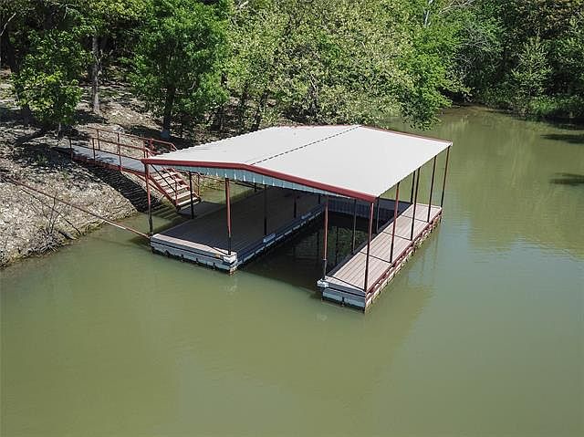 Boat Dock & Slip, Nice Shop, 3 Bed & 2.1 Bath on .70+ Acre on Moss Lake! With 103' waterfront, this lake property offers the perfect Scenic views on your privately owned covered dock tucked away in channel right off the main body of lake protecting from winds with; boat slip, Trex decking & electricity. Workshop has electricity & covered porch. A covered porch stretches across the front of Lake Home welcoming you into 2 large living areas, open floor plan, large island in kitchen, Master suite with generous bathroom, deck overlooks property leading down to dock. Concrete walkways and stairway leading down from the house & shop for easy passage to the dock. Plenty of parking around property! Covered 2 Carport!!