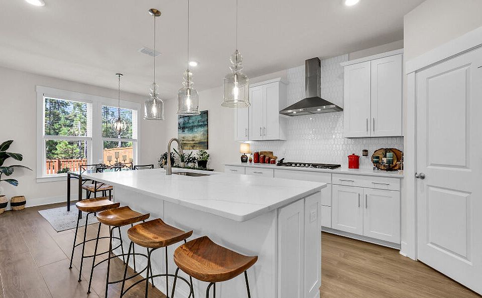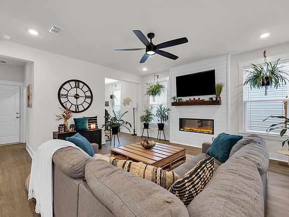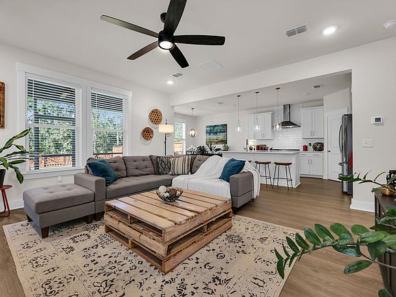 Discover the perfect blend of elegance and comfort in this move-in ready 4-bedroom home, thoughtfully designed with over $60,000 in high-end upgrades located in Jasmine Point at The Lakes of Cane Bay. The gourmet kitchen is a true showpiece, featuring 42'' cabinetry, quartz countertops, a custom backsplash, wall oven, built-in microwave, pull-out shelving, built-in trash bins, and a professional 5-burner gas cooktop with griddle insert and hood.The open living room is anchored by an electric fireplace with color-changing LED lighting, shiplap surround, and Ozark mantle. Solid oak stair treads with open railings add elegance and durability. The spacious primary suite offers a spa-inspired bathroom with upgraded tile, quartz countertops, tiled shower walls, semi-frameless glass enclosure, and a private water closet. The guest bath includes dual sinks, quartz counters, and designer tile flooring. Additional upgrades include a cottage trim package around all doors, windows, and baseboards. Step outside to a screened patio with ceiling fan overlooking a beautifully landscaped, fully fenced yard with a 4-zone irrigation system and whole-home gutters. Located in Jasmine Point at The Lakes of Cane Bay, residents enjoy premium amenities including a resort-style pool, walking and golf cart trails, playground, fishing ponds, and exclusive access to the community's private boat ramp, dock, and primary lake. All just minutes from shopping, dining, and top-rated schools.